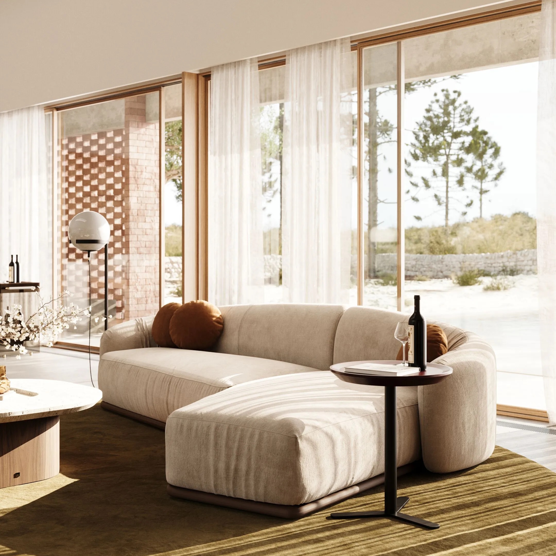 Experience Amália, a curved sofa that offers both serene comfort and timeless elegance,Its low height and soft, cloud-like curves create an inviting and versatile seating experience. This gentle design promotes relaxation and tranquility. Amália is a distinctive piece that infuses any contemporary living space with grace and cultural resonance.