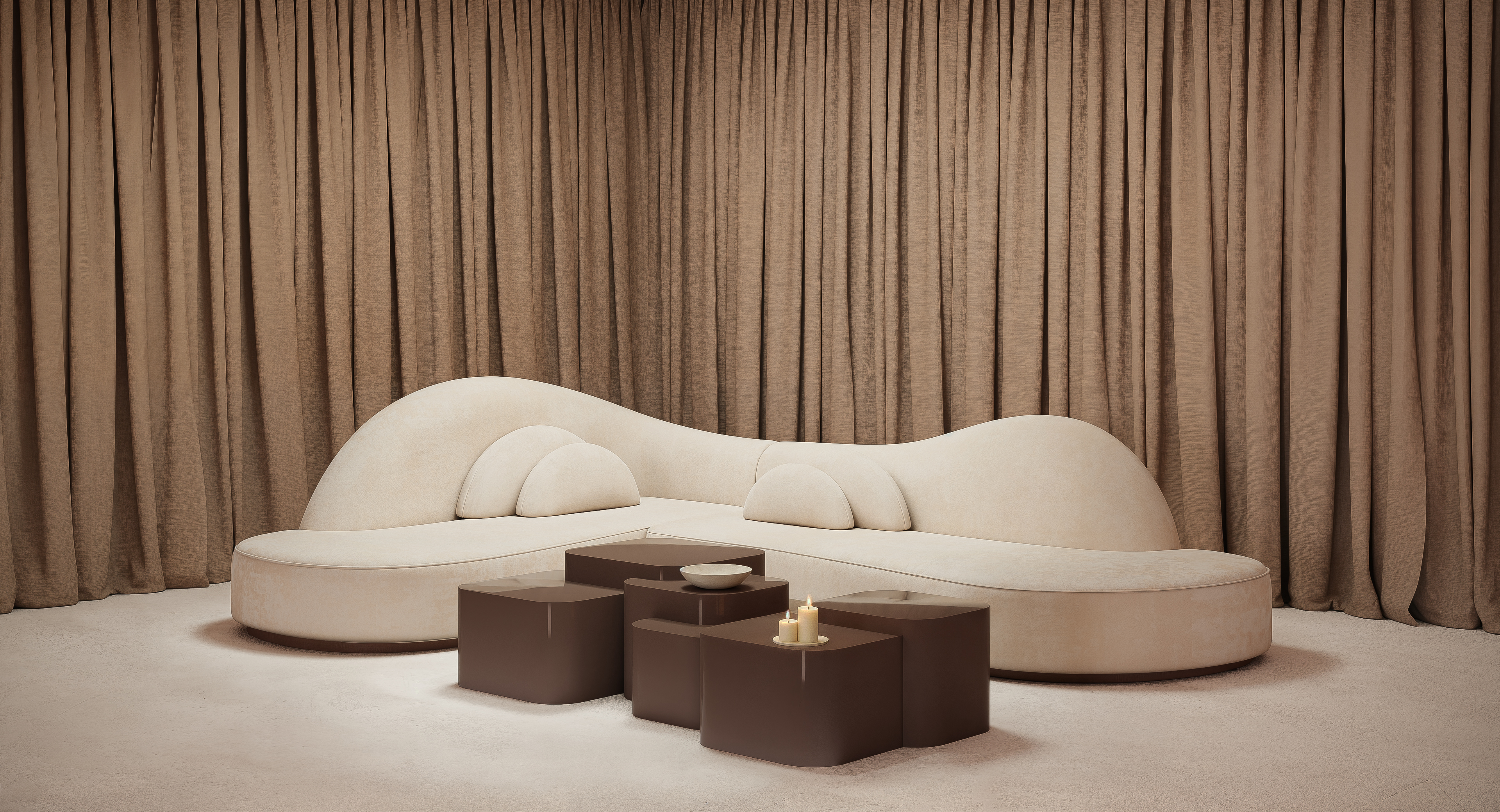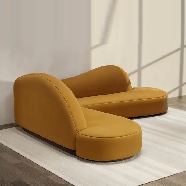 This sofa distinguishes itself with its curved sectional silhouette and organic back design, creating the illusion of seamlessly fitting into a 90-degree corner and making any room feel cozy. Its timeless design, featuring a contemporary silhouette with soft lines and balanced proportions, exudes sophistication and charm.