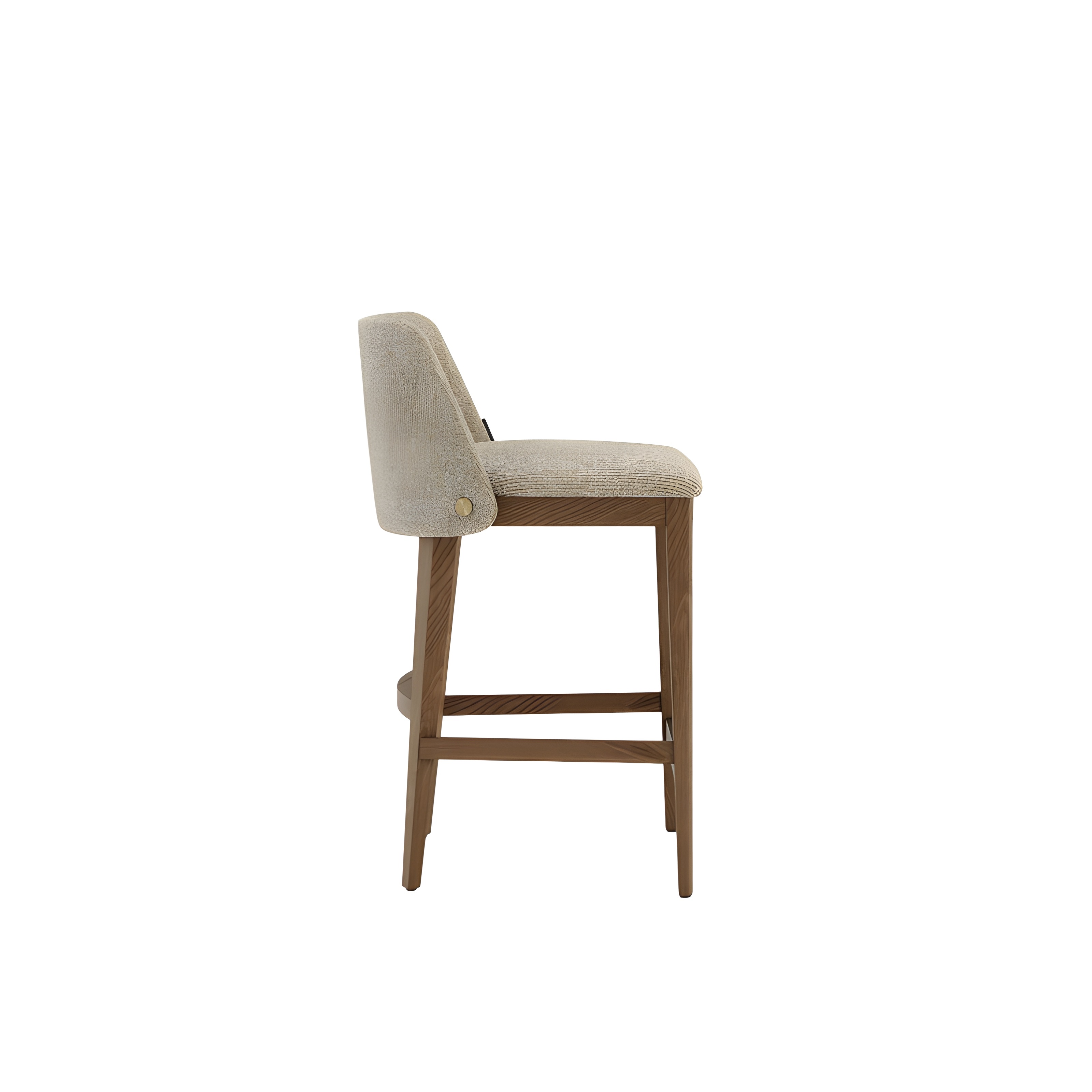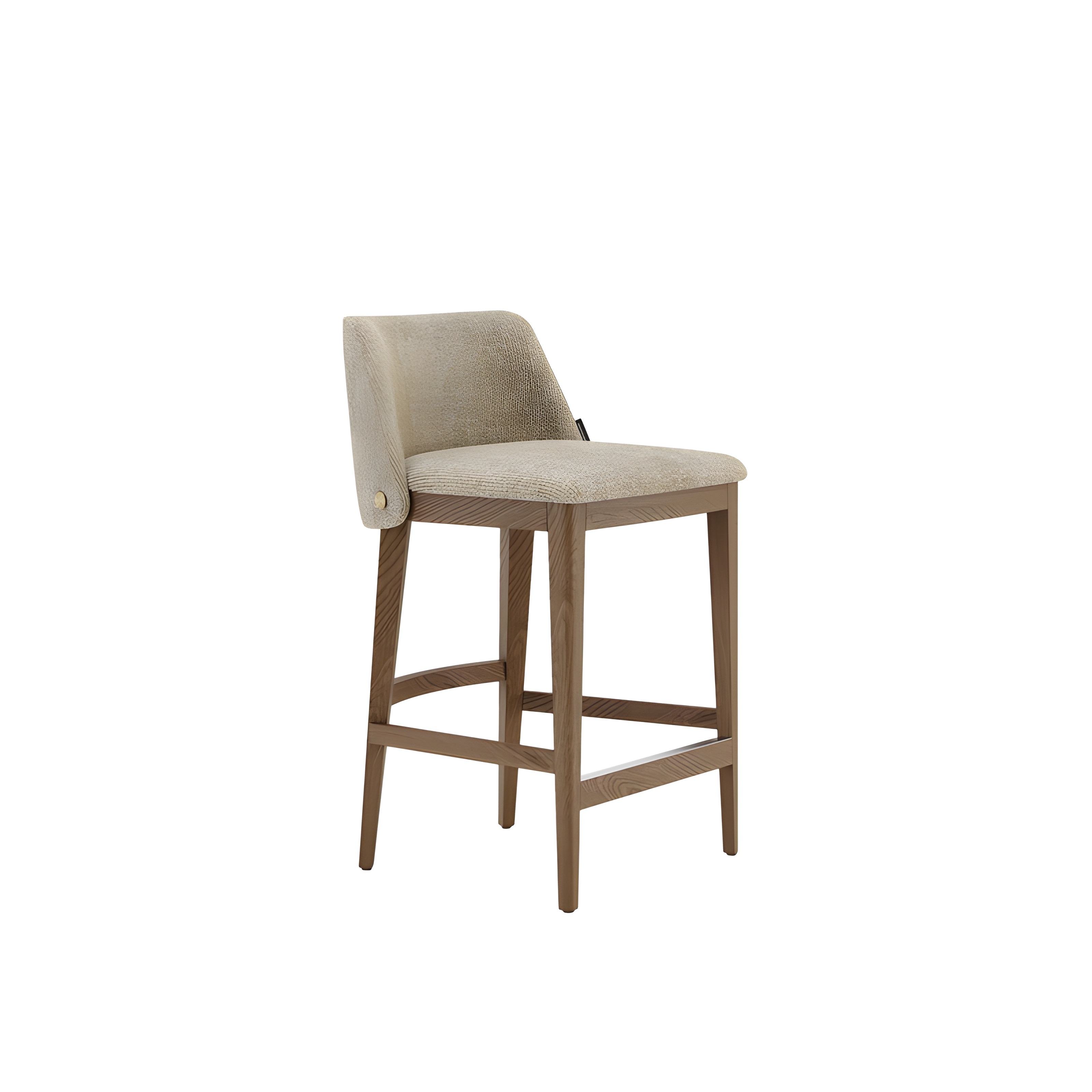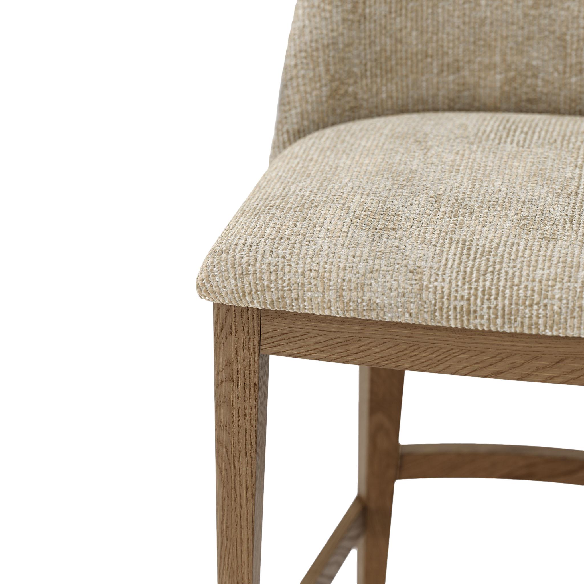 The Louise Bar & Counter Chair marries robust design with exquisite comfort. It is fully upholstered to ensure a deeply relaxing seating experience. The design is perfected by sleek wooden legs and a subtly curved backrest, which provides comfort while maintaining a daring silhouette, beautifully accented by a precise line of golden nailhead trim. With its straightforward yet sophisticated lines, the Louise adapts seamlessly, elevating any space with a touch of classic, enduring elegance.